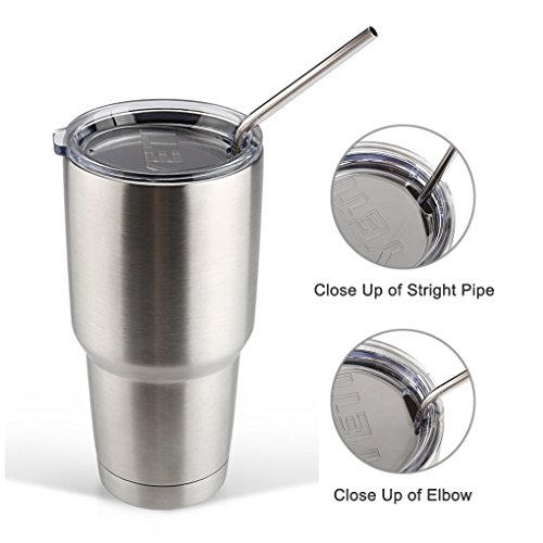 - ✿ WIDELY USED - These are not intended to be used with smoothies, due to them not being wide enough. Also, the straw is only approximately 7-8 inches long after the bend (Approx 9-10 inches total), so it will not fit in all cups. This fits the YETI 30 oz and the RTIC 30 oz tumblers. Set of 4 straws, with cleaning brush included.