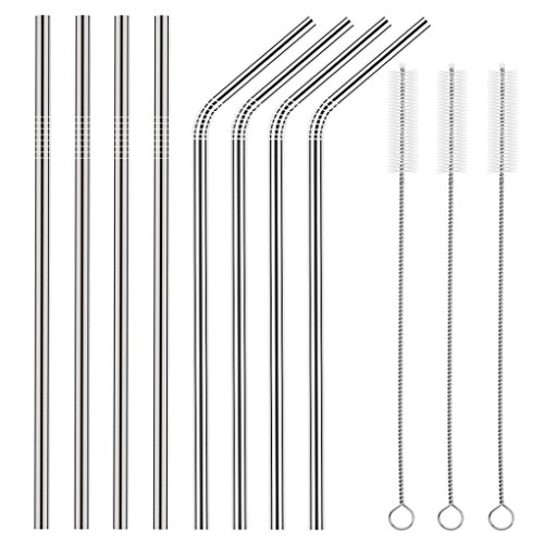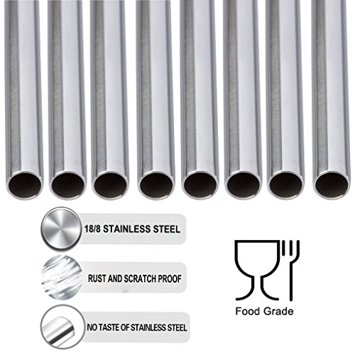 Ambox Set of 8 Stainless Steel Straws, FDA-Approved Extra Long 10.5'' Metal Drinking Straws for 30 oz and 20 oz Stainless Tumblers Ramblers Cold Beverage, Fit All Yeti Ozark Trail SIC & RTIC Tumblers
