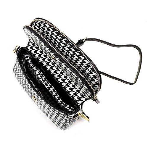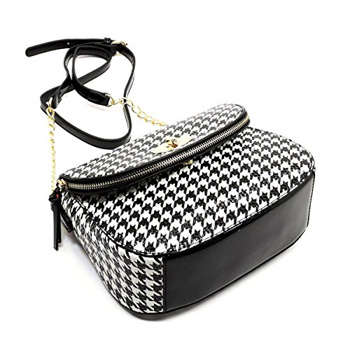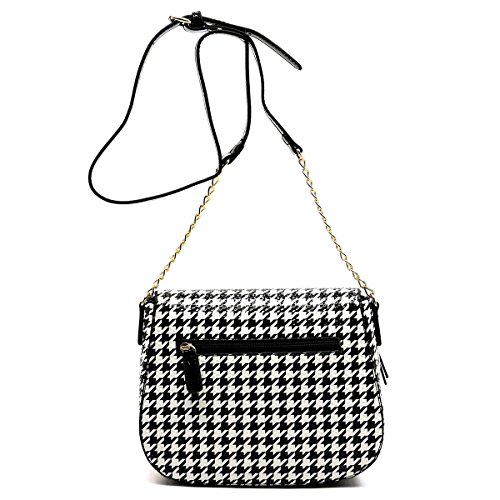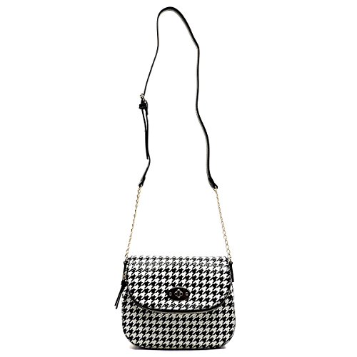 -. Title : Elphis Houndstooth Leopard Glossy Animal P.R.Inted Saddle Satchel Crossbody Bag Purse (046B)