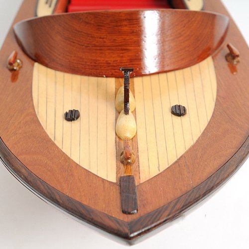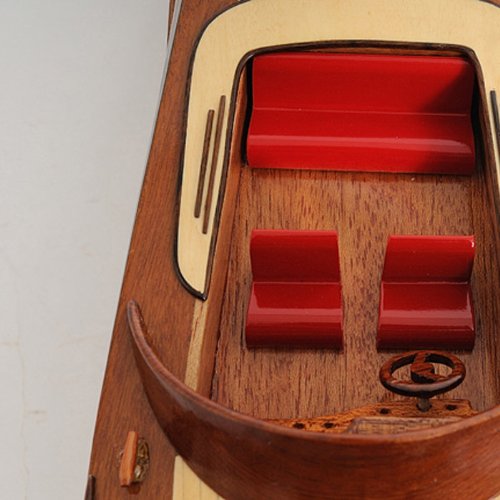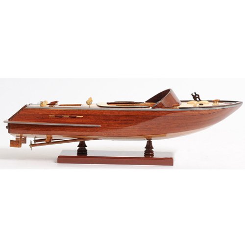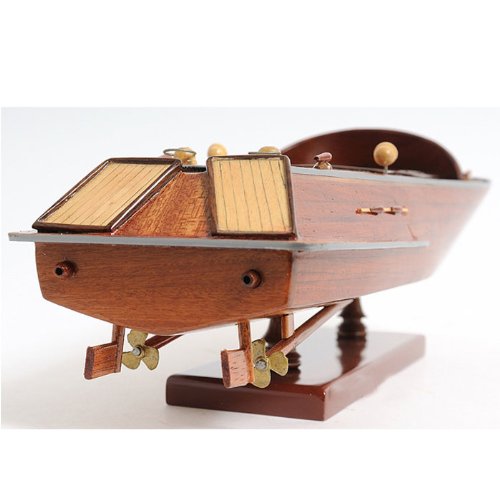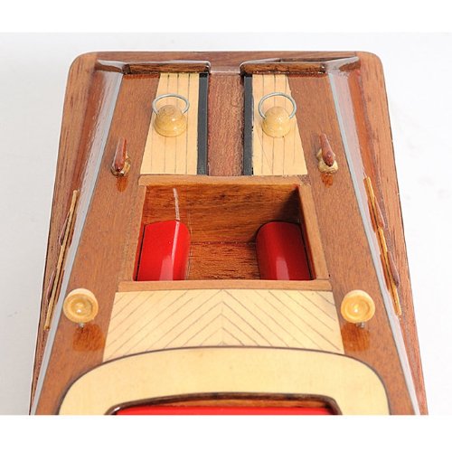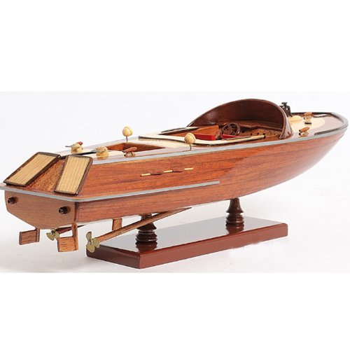 Studio : Old Modern Handicrafts Publisher : Old Modern Handicrafts Product Description Our Runabout Canoe is filled with details and ornaments that are handcrafted from various high-quality wood such as mahogany and exotic local woods. On this model, you can locate the beautiful crafted wooden and metal knick-knacks such as steering wheel, seats, lights, canoe propeller, and many more. This model is completely hand built by skillful and creative master craftsmen, you will be amazed at how real it looks. The Runabout Canoe model was built according to scale through original plans, pictures and drawings (1:12). The model sits on a wooden stand and is ready to be display. This model is shipped fully assembled.The "wooden runabout boat" we know today did not exist prior to the early part of this century, and, for the most part, ceased to be built shortly after its heyday of construction during the mid-1950s. Today, only small numbers of all-wood runabouts are built. The runabout is characterized by the all-wood construction of its hull (whether it is painted or stained and then varnished, and whether its deck is all-wood as well, or canvas-covered), and its inboard motor.Country of Origin: Viet Nam.Carton Dimension: 7 in. H x 19 in. W x 7 in. D 0