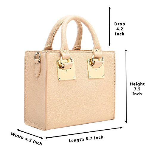 -. Feature : MATERIAL: High quality faux leather with fabric lining and durable gold tone hardware, top smooth zipper closure / DIMENSIONS: 8.7" L x 4.2" W x 7.5" H; 4.5" top-handle drop; the removable and adjustable 30" shoulder strap could change this handbag to a cross-body bag or a women shoulder bag / INTERNAL: 1 main compartment to easily carry your small umbrella, wallet, cosmetics, cellphone, etc. 1 inner zipper pocket & 1 interior slip pocket to place your small stuffs and get them out easily / FEATURES: Candy color, cute, lightweight and small fashion handbags with simple design. Perfect for trips, shopping, work or other occasions. / GUARANTEE: We guarantee the best purchase experience for every buyer. 100% Refund is available if you are not satisfied with our cute purses.
