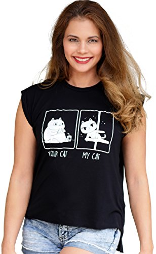 -. Feature : While we think pudgy kitties are undeniably cute, we advocate getting fur babies off the couch (and off the kitty pizza and soda!) and onto the pole. Show your support for fit and sexy kitties with our exclusive "Your Cat vs. My Cat" cap-sleeved tee. Perfect for any pole athlete, dancer, cat lover, aerialist, movement enthusiast or anyone with a sense of humor! / 65% polyester 35% viscose. / Premium tee is relaxed, draped fit with rolled cuffs. Hi-low raw bottom hem. Exclusive graphic on front. / Machine wash warm, inside out, with like colors. Only non-chlorine bleach. Tumble dry low. Do not iron decoration. Do not dry clean. / This item is created, developed, P.R.Inted and made with love and purrs in Los Angeles, CA USA by pole fitness celebrities Natasha Wang and Arloa Reston for cat ladies who are fun, sexy and fit!