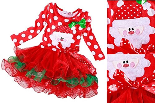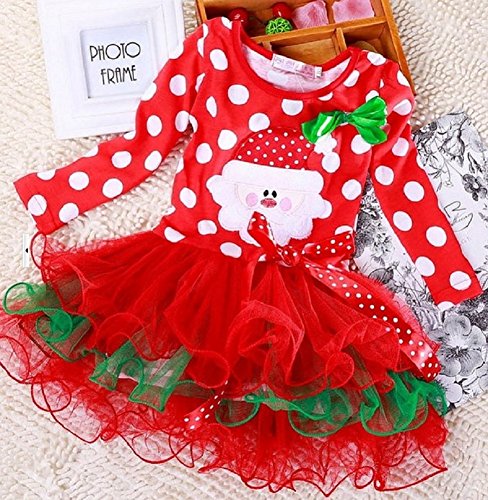 Title : SSJ: Cute Santa Claus Applique Red Dot Pattern Xmas Tutu Dress Long Sleeved (120cm, Red)