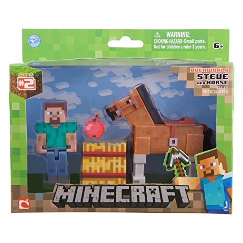 -. Title : Minecraft Steve and Chestnut Horse Action Figures, with Hay Block And Apple (2 Pack)