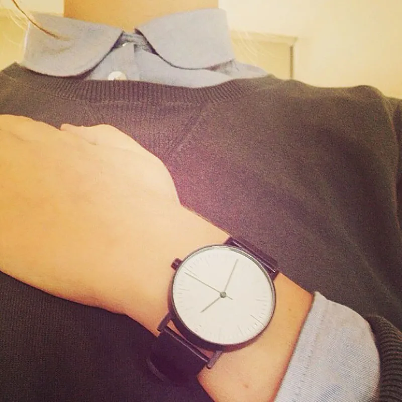 STOCK Quartz Watch Men Top Brand Black Leather Watches Relojes Hombre 2016 Horloge Orologio Uomo Montre Homme clock S001K