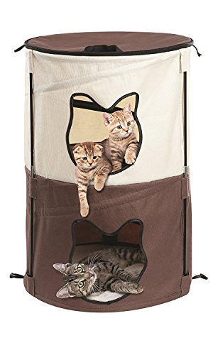 Studio : Imperial Home Publisher : Imperial Home Binding : Misc. Product Description So many of us love living in a two-story condo, so why not cats? Now they, too, can experience condo living. This portable cat condo is not only great for you for traveling and storage, but your cat will have a field day in this two-story tower of fun. It features three side-supporting poles and it pops open in seconds. It has a nice and soft fleece floor that is removable for cleaning. It's collapsible, and contains zipper closures and convenient handles for carrying when your kitty is done playing and relaxing. Can't forget the kitty cut-out windows for cute decoration for your cats viewing pleasure. When opened, this cat condo is 24-inches high and 16-inches in diameter for loads of cat fun. 0