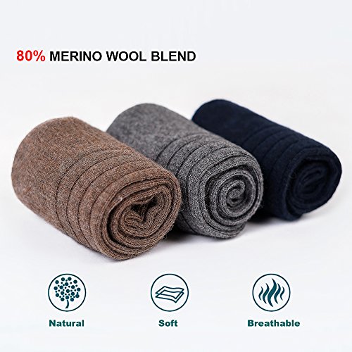 -. Brand : Time May Tell -. Department : mens -. Feature : MATERIAL: These wool socks made of 80% merino wool blend, all these merino wool socks are integrally sutured by meticulous process, there are no spare threads inside. soft handle, good elasticity, strong warmth retention and moisture absorption. / FASHION DESIGN:Black,gray,dark gray,the looking is fashionable ,enough for any occasion. With stylish patterns and vibrant colors perfect for everyday wear and it is cozy enough to wear these wool socks for you in cold winter! / TWO SIZE FITS MOST MENS : These Merino wool knit crew socks can fit most men's feet. Our merino wool crew socks are very soft and incredibly stretchy. Easy to put on and fall below the base of your calf ,will fit you perfectly. / GREAT GIFT CHOICE : Our merino wool socks make the perfect present for hikers, outdoor walkers and keeping your feet dry, warm and comfortable,you can choose for your boyfriend, son, husband,as birthdays, Christmas gift. / 100% RISE-FREE GUARANTEE:Full protection for your purchase,if you are not satisfied with our socks,you can get 100% money back guarantee, ,so click the yellow "Add to Cart" button and order them today! Time May Tell,who care you most! -. Model : BGG-11 -. PackageQuantity : 3 -. ProductGroup : Apparel -. ProductTypeName : APPAREL -. Title : 3 Pairs Men's Winter Athletic Merino Wool Socks - Thermal Crew Socks Suit for Hiking