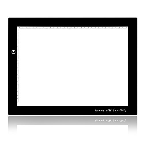-. Feature : 3段階明るさが調光できますから、電源ポイントを押して低度、中度、高度三つの三段階が調節できます。理想的な明るさを得ます。作業の環境と紙の厚さによって、明るさが調節できます。目に優しいLEDデザイン、視力を保護する技術がありますから、働いた長時間後、目の乾燥と痛み感がありません。 / 薄型デザインと完璧な光度:厚さは8mmだけです。完璧な潔白なLEDの光を差し上げます。そして。LEDは50000時間の超寿命ですから、耐用性があります。LEDの明るさは1100ルクスですが、照明均一性は744cd/㎡です。光のチラツキがありません。 / 適応範囲:プロ絵師、デザイナー、芸術家、大学生、子供など、ペンタブレットが高すぎて買えない、イラスト初心者にぴったりな練習アイテムです。 / USB給電、アダプタ:USB給電線がありますから、A4 LEDトレース台はパソコン、移動充電器から充電できます。または、アダプタを通して、コンセントに差し込んて充電できます。 / セット内容:LEDトレース台・電源アダプター・USB充電ケーブル・説明書