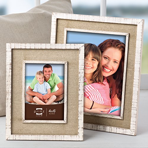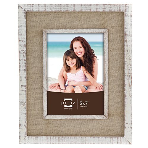 -. Title : P.R.Inz Shore Side Distressed White Frame with Beige Linen Border, 5 by 7-Inch