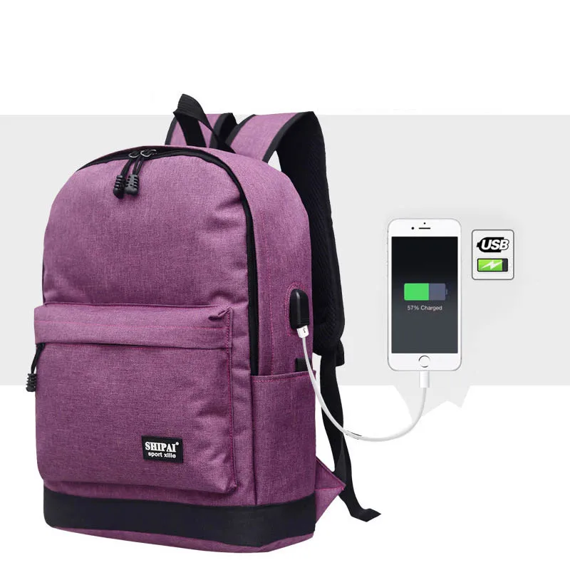 ファッションキャンバス男性旅行女の子大容量男性ビジネスラップトップ学生バックパックusb充電器ユニセックス0965874