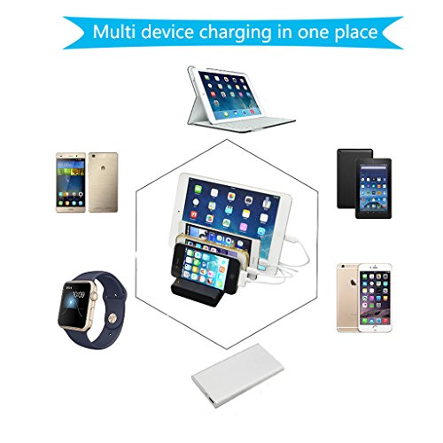 With four brackets, four USB charging ports, which can put one tablet and three mobilephones charging meanwhile. With non-slip mat to ensure secure placement.