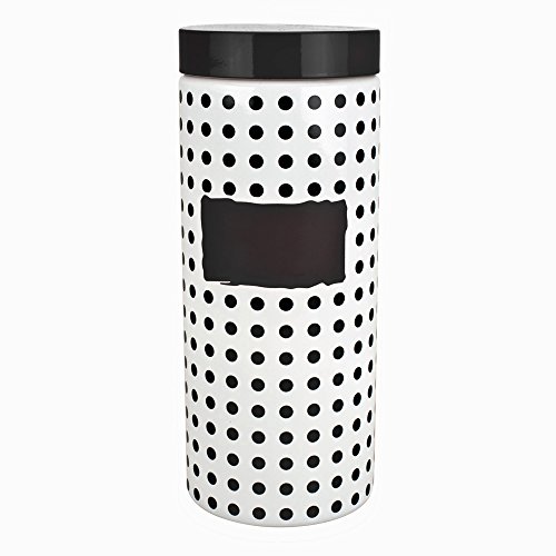 Housewares International 34150 Blue Harbor Glass Jar Polka Dot with Black Lid, 74.3 oz, White