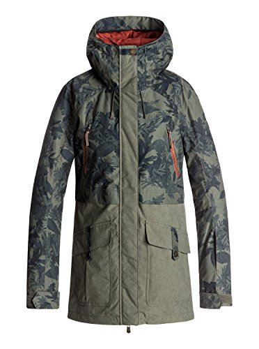 Product DescriptionSnow jacket for women. Features include: waterproofing: 15K ROXY DryFlight® technology , fabric: nylon/polyester twill, fit: tailored long, insulation: ThinsulateTM Type m [Fill weight: 60g body, 40g sleeves and hood], lining: lightweight recycled polyester taffeta and embossed taffeta with brushed tricot.0