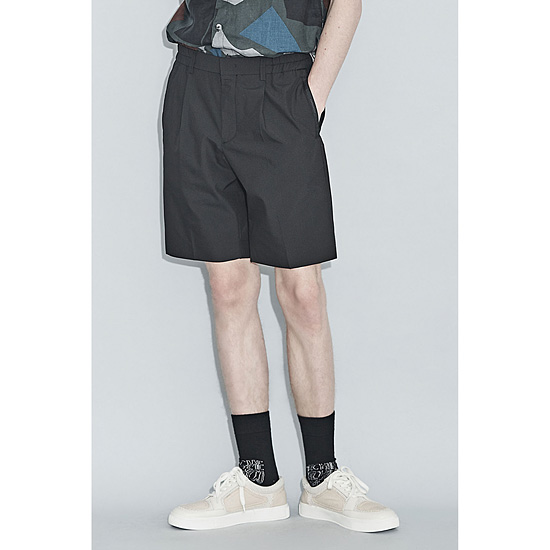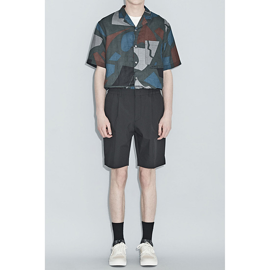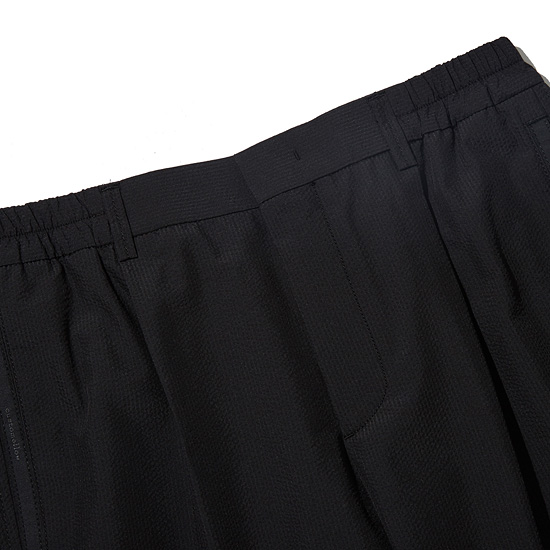 - 시원한 터치감의 서커 폴리 소재로 제작된 셋업 남성 하프 팬츠.