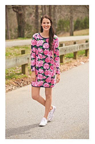 Product DescriptionLong sleeve cotton French terry shift dress features scoop neck and tulip hemline with contrast binding. Measures approximately 35" on size small.0