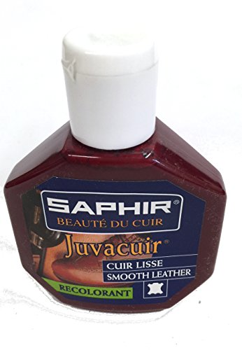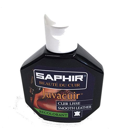 Saphir Juvacuir is a liquid containing beeswax and pigments for restoring leather's original color. The liquid formulation means that this product is particularly suited for renovating large surface areas, e.g. jackets, leather goods, footwear, furniture, handbags and upholstery. 75 ml bottle (2.53 fl oz) Saphir was founded in 1920 and is now France's foremost brand. It is also a world leader due to the quality and diversity of its leather care and renovation products and has successfully met the challenge of maintaining traditional manufacturing practices. Saphir's goal is to offer products manufactured from natural raw materials, selected for their efficacy: turpentine oil, beeswax, carnauba, lanoline and ozokerite wax, jojoba, mink, neatsfoot and sweet almond oil. With this policy, Saphir is the only brand in the world to refrain from incorporating any resin or silicon whatsoever in the manufacture of its polishes, and from marketing any product harmful to leather life.Feature