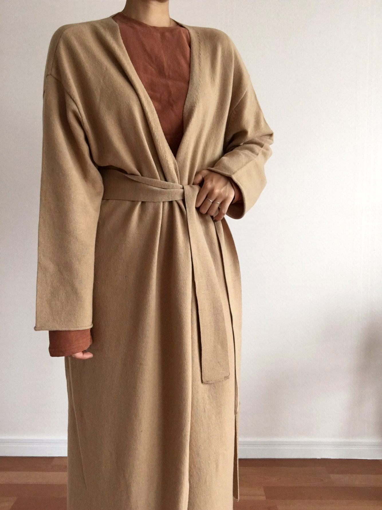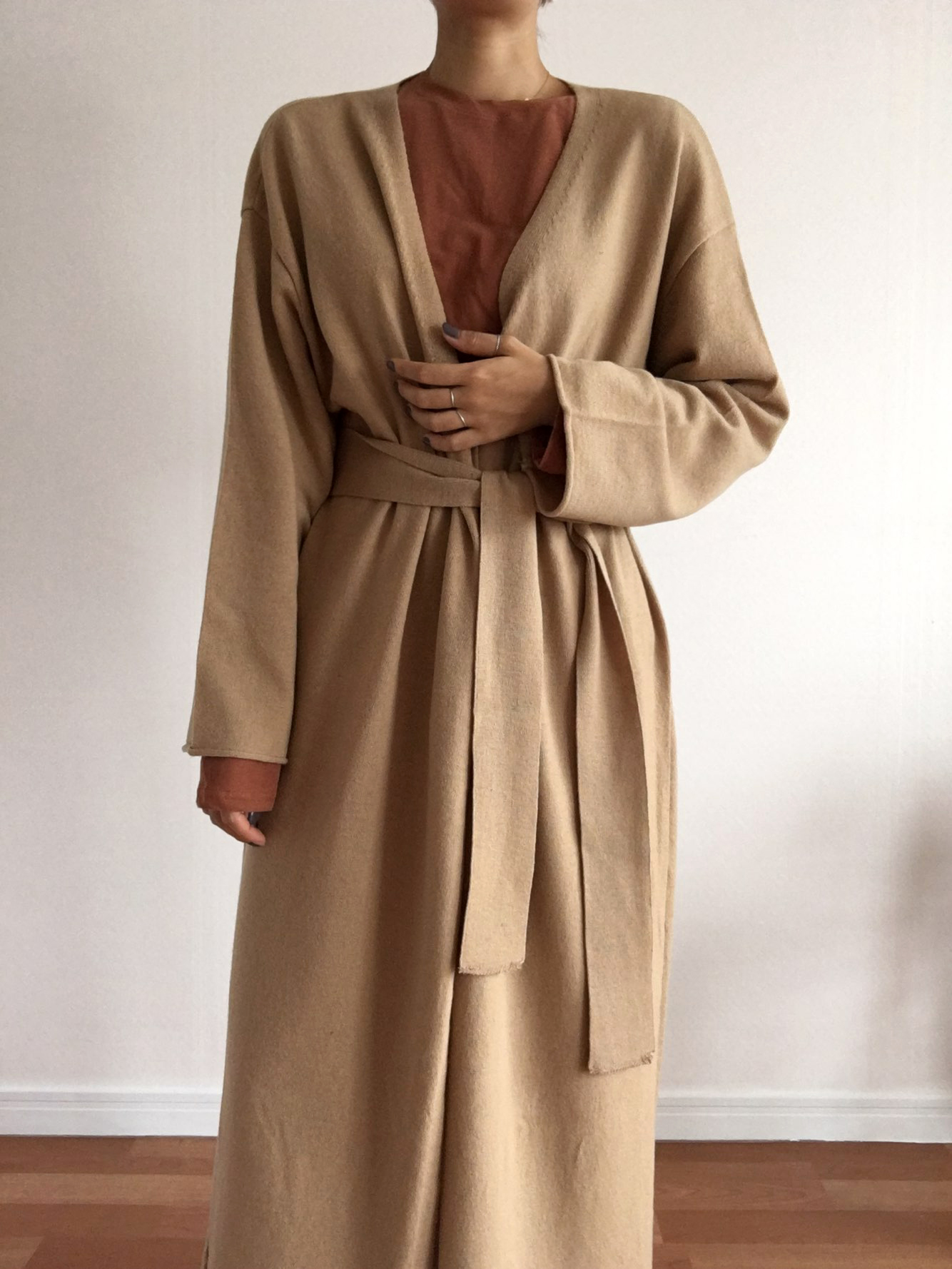 Kobana Lob Long Cardigan Foliage Fall Foliage Beige Open Fashion Wool