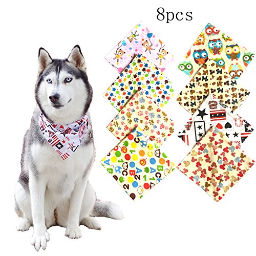 -. Binding : Misc. -. Brand : Rypet -. EAN : 6982127603705 -. Feature : The size of each is 25.6 *17.7in,fit for pet whose neck size less than 21". / The colors are bright and shinning with funny and attractive patterns. / The fabric is skin-friendly and great quality to wear closely. / Fashionable and adorable style which perfect amount for your boy and girl to wear different variety everyday. / The size fits almost all pets,cat,small medium and large breed dog,but maybe a litter huge for your puppy. -. Label : Rypet -. Manufacturer : Rypet -. MPN : 052-Bandana -. PackageQuantity : 1 -. PartNumber : 052-Bandana -. ProductGroup : Pet Products -. ProductTypeName : PET_SUPPLIES -. Publisher : Rypet -. Size : S -. Studio : Rypet -. Title : Rypet 8 Pcs Dog Bandana Triangle Puppy Bib Head Scarfs Accessories for Pet Cats and Puppies