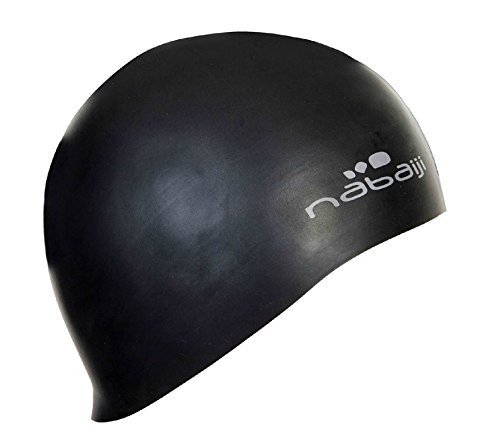 AJIM [310] Silicone Swim Cap for Recreational Swimming (Black, Adult)
