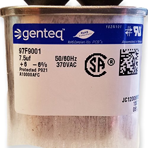 GE Genteq Capacitor Oval 7.5 uf MFD 370 Volt 97F9001 (Replaces Old GE 27L566 97F4158, Z97F4158, 27L566BZ3), 7.5 MFD at 370 volts