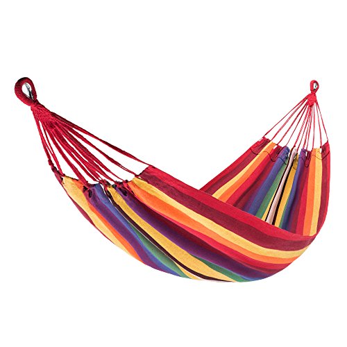 KingCamp Hammock Cotton Fabric Canvas 264lbs Swing Bed with Hardwood Spreader Bar Tree Hanging Colorful Stripes for Outdoor Camping Patio Yard Beach