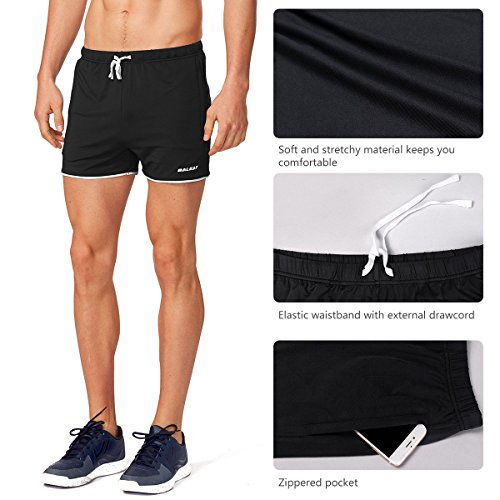 -. Title : Baleaf Men's Fitted Bodybuilding Gym Workout Shorts Zipper Pockets
