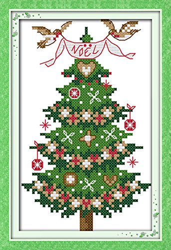 Lemon Tree Cross Stitch Starter Kits Beginners Cross-Stitching Accurate Pre-printed Pattern -Merry Christmas 11CT 7”X9”, Frameless (Christmas tree)
