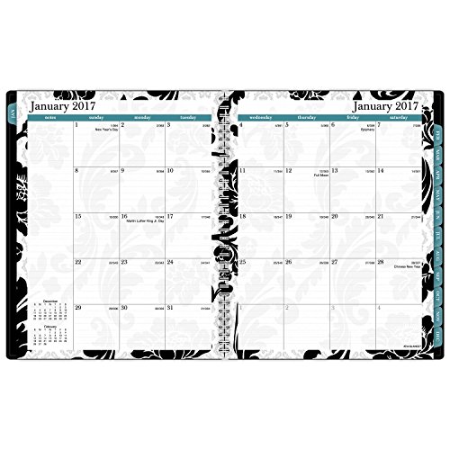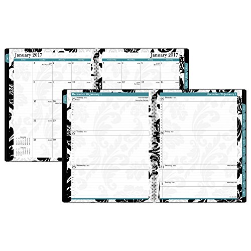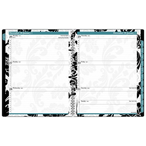 -. Feature : Classic black and white paisley accented appointment book with a pop of teal adds style to your planning routine. Cover pocket for personalization and storage. / Weekly: one week per two page spread with column hourly appointments Monday - Friday (8:00 a.m. - 5:00 p.m.). Monthly: one tabbed month per two page spread with notes space, past and future months reference; Julian dates / Special section include a holiday listing, 3 year overview calendars, event calendar, contacts, and notes / Includes protective plastic cover. P.R.Inted on quality paper containing 60% post-consumer waste. Page size 8.5 in. x 11 in.