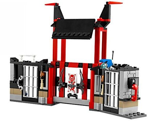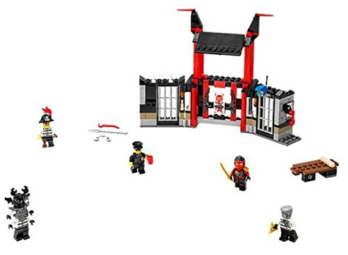 -. Feature : 207 pieces / Includes 5 minifigures: Zane in P.R.Ison outfit, Kai in Skybound outfit, Giant Stone Warrior with 4 arms and P.R.Ison outfit, Captain Soto with P.R.Ison outfit and a P.R.Ison guard / Kryptarium P.R.Ison Breakout features a drop-down main entrance gate, 2 P.R.Ison cells (1 with an explode-function door that is activated by turning the red telephone), a toilet escape route, and a security camera-style element / Also includes a buildable table catapult with a bread roll element to launch and start a food fight, plus a hidden treasure map and shuriken weapon. Weapons include Kai's golden sword, 2 golden shurikens, plus a spear and a red crowbar attached to the back of the toilet / Kryptarium P.R.Ison Breakout measures over 5" (15cm) high, 9" (23cm) wide and 3" (9cm) deep