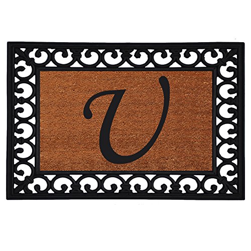 Home & More 180041925V Inserted Doormat, 19" X 25" x 0.60", Monogrammed Letter V, Natural/Black