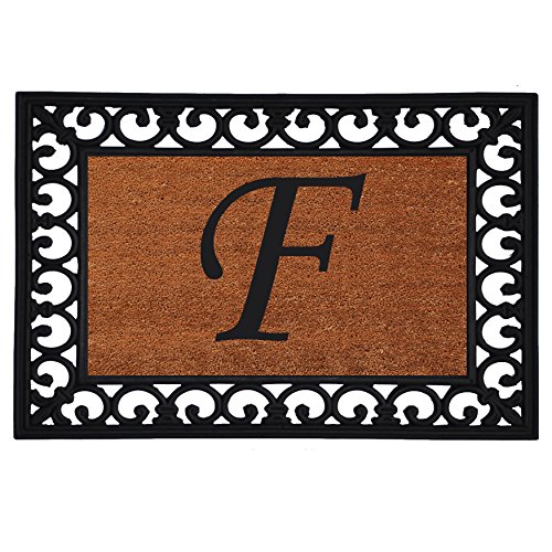 Home & More 180041925F Inserted Doormat, 19" X 25" x 0.60", Monogrammed Letter F, Natural/Black