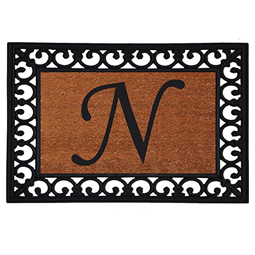 Home & More 180041925N Inserted Doormat, 19" X 25" x 0.60", Monogrammed Letter N, Natural/Black