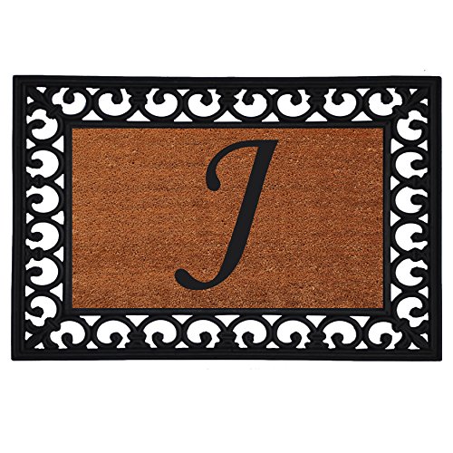 Home & More 180041925J Inserted Doormat, 19" X 25" x 0.60", Monogrammed Letter J, Natural/Black