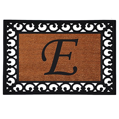 Home & More 180041925E Inserted Doormat, 19" X 25" x 0.60", Monogrammed Letter E, Natural/Black