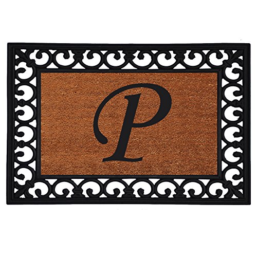 Home & More 180041925P Inserted Doormat, 19" X 25" x 0.60", Monogrammed Letter P, Natural/Black