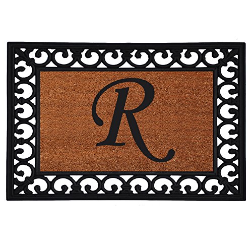 Home & More 180041925R Inserted Doormat, 19" X 25" x 0.60", Monogrammed Letter R, Natural/Black