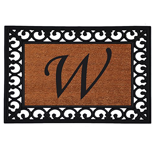 Home & More 180041925W Inserted Doormat, 19" X 25" x 0.60", Monogrammed Letter W, Natural/Black