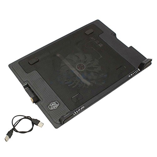 -. Feature : Cooling pad for laptop with bulit-in powerfuI fan for easy thermal heat dissipation. USB Laptop Cooling Pad Quiet Fans. Extremely heavy-duty construction of the cooling pad to afford any weight or pressure put-on. No need for any installation / Your laptop can breathe easily with this ultimate notebook cooler. Extend the life and functionality of your laptop. Convenient, reliable and comfortable to carry. With the sturdy engineering structure,offer 5 different height setting for laptop users better viewing angle. / (Fan Quantity: One), (Cooling Type: Air), (Weight: 950g/33.51oz), (Material: Plastics, Rubber,Metal mesh), (Color: Black), / (Product Dimensions: 14.56 x 10.43 x 2.36inch/37.0 x 26.5 x 6.0cm(L x W x H)), (Package Dimensions: 15.15 x 10.63 x 2.6inch/38.5 x 27.0 x 6.6cm(L x W x H)), (Fan Dimensions: 5.51 x 5.51 x 0.59inch/14.0x 14.0 x 1.5cm(W x D x H)) / (USB Length: 18.89inch/48.0cm), (Speed: 700-1400 RPM), ( Powed: USB), (Noise value:15.0 dBA), (Rated Voltage: 5V DC), (Operation degree:6.5~45 degree), ( Bearing Type: r.i.f.l.e), (Fan Life Expectancy:40000 hours), (Compatible Size: from 9" notebook-17" laptop,including widescreen), (Cable length:60cm/23.62inch), (Others:4 anti-slip rubbers).