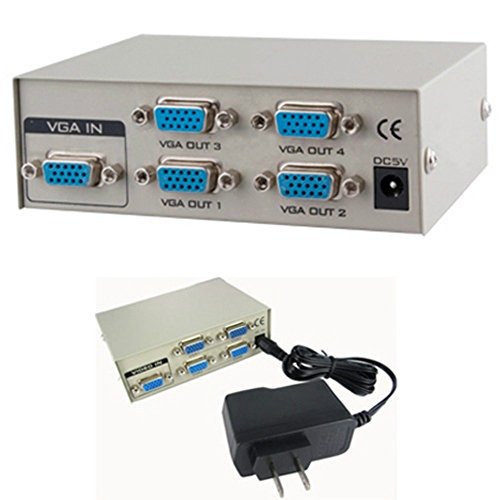 -. Feature : Splits the signal -- displaying the same image on 4 displays or screens / Input:1 VGA 15HDF Input ;Output Port:4 VGA 15HDF Output / 250Mhz Video Bandwidth / Maximum cable distance 98.4 feet (30m) / Supports resolutions up to 1920x1440