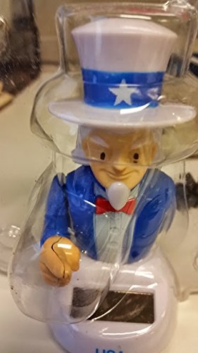 -. Binding : Toy -. Brand : Solar Toys -. Color : Brown -. EAN : 8764161768194 -. Feature : Solar powered, batteries are not needed / Uncle Sam, really funny!!! -. IsAdultProduct : 0 -. Label : Solar Toys -. Manufacturer : Solar Toys -. MPN : FBA_uncle sam -. PackageQuantity : 1 -. PartNumber : FBA_uncle sam -. ProductGroup : Toy -. ProductTypeName : TOYS_AND_GAMES -. Publisher : Solar Toys -. Studio : Solar Toys -. Title : Solar Dancing Uncle Sam 4.5" -. UPC : 792736189660