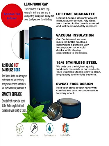 Well Insulated for keeping the beverage from Warm or Cold. Double walled Stainless steel to keep the the drinks warm or cold as you desire. The insulating properties of stainless steel water bottles means that you can enjoy cool drinking water up to 24 hours after filling the bottle from your water cooler. Hot water stays warm for nearly six hours in the stainless steel bottle.