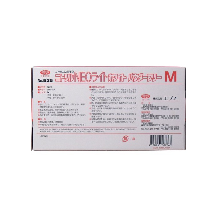 《에부노》 《니토리루》장갑 파우더 프리 화이트 M사이즈