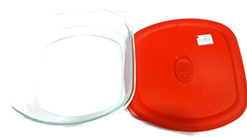 Pyrex 3 Qt Square Bundle: Square Dish with Red Plastic Microwave Vented Lid