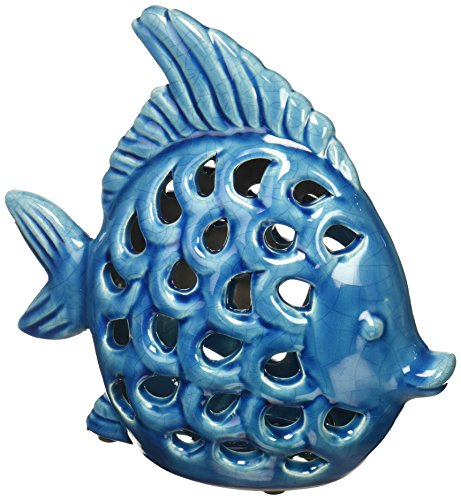 Urban Trends Ceramic Fish Figurine with Cutout Sides in Gloss Finish, 14" x 10" x 14", Blue