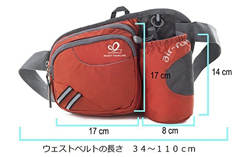 商品名: WATERFLY(ウォーターフライ) アウトドア ウエストバッグ ウエストポーチ ボディバッグ 小物収納 水筒ポーチ付き スポーツ仕様 ユニセックス 軽量 防水 (オレンジ)。