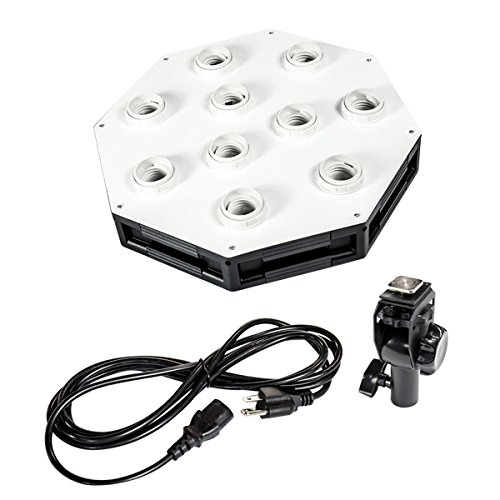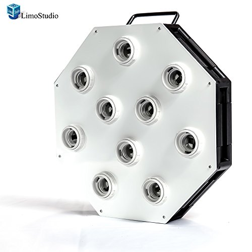 Studio : LimoStudio Publisher : LimoStudio Binding : Electronics Product Description (1) x Octagon Panel Continuous Light with 10 light bulb sockets This Octagon shaped light panel features 10 light bulb sockets. Capable of holding up to 10 CFL light bulbs. Maximum capacity is 45W bulb. Each light socket has a standard E26/E27 base. A/C adapter input included on the back of light panel. ON/OFF button is on the back of light panel. Fit for octagonal soft boxes. Size : 13.8" in diameter Voltage : AC 120V