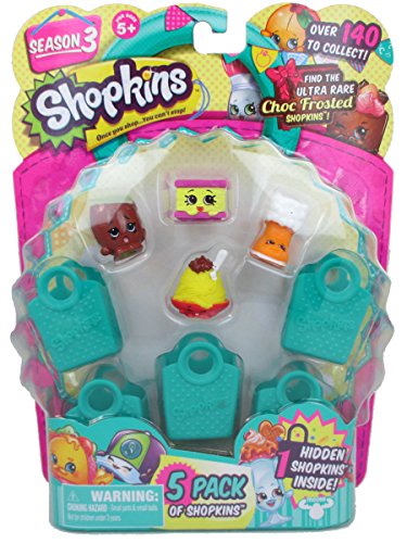 Kick-start your Series 3 Shopkins collection with the 5 Pack. Shop away with the Shopkins 5 Pack! Over 150 to Collect. Style Guide Included. Includes: - RARE Netti Spaghetti (3-088) - Pee Wee Kiwi (3-080) - Nilla Slice (3-009) - Snug Ugg (3-049) - Plus 1 Mystery Shopkin!