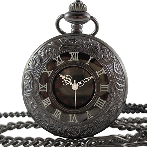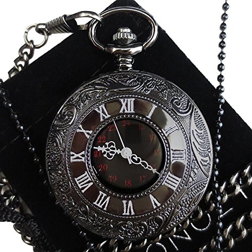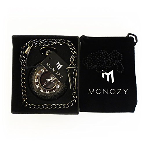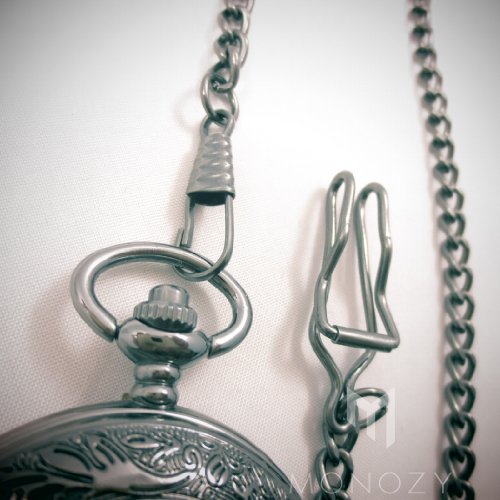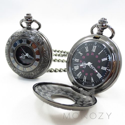 [モノジー] MONOZY 【黒の懐中時計】 アンティーク 懐中時計 【フックチェーン+ネックレスチェーン+収納ポーチ+化粧箱 5点 セット】 レトロ ブラック クローム 人気のMONOZY黒の懐中時計をネックレスウォッチとしてもお楽しみ頂けるようにしました。 渋いブラッククロームの懐中時計です。文字盤だけでなく蓋のローマ数字のインデックスがアンティークな雰囲気を出しています。