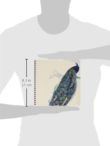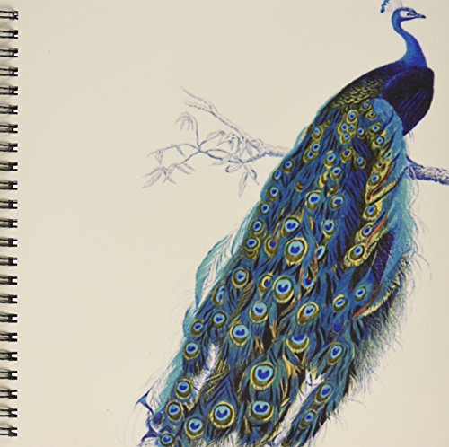 3dRose db_113188_1 Vintage Peacock Art-Blue and Green Elegant Stylish Bird on Branch Beautiful Tail Feathers-White-Drawing Book, 8 by 8-Inch
