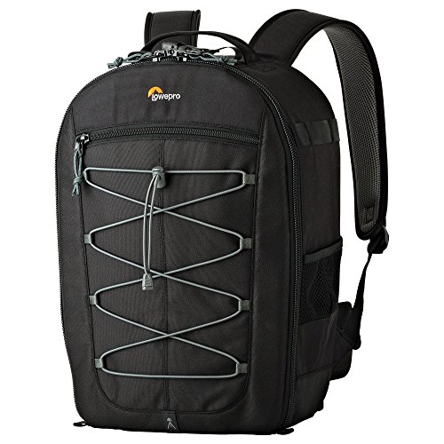 The Photo Classic BP 300 AW fits a DSLR with attached lens (up to 70-200mm), 3 to 4 extra lenses or other accessories, multiple action cameras (like GoPro or Contour), a 10" tablet, and a tripod (attached to the exterior of the bag)